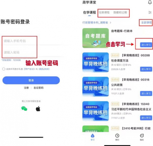 平台操作简洁直观,上手门槛极低。学员注册登录账号后,即可一键进入专属学习主页,清晰区分在学课程、往期课程与全部课程分类,快速定位对应自考、成考等所学科目,点击即可直接进入课堂开启学习。无论是通勤间隙、午休碎片时间,还是晚间居家整块时间,学员都能灵活安排学习节奏,彻底打破时间与空间的学习限制。